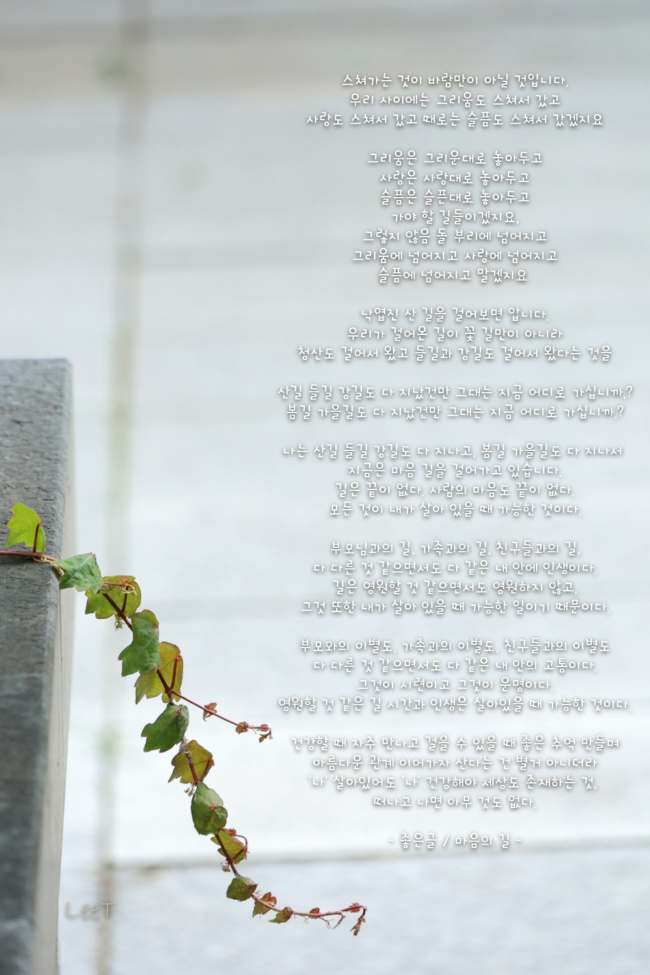 지금은 마음 길을 걸어가고 있습니다.