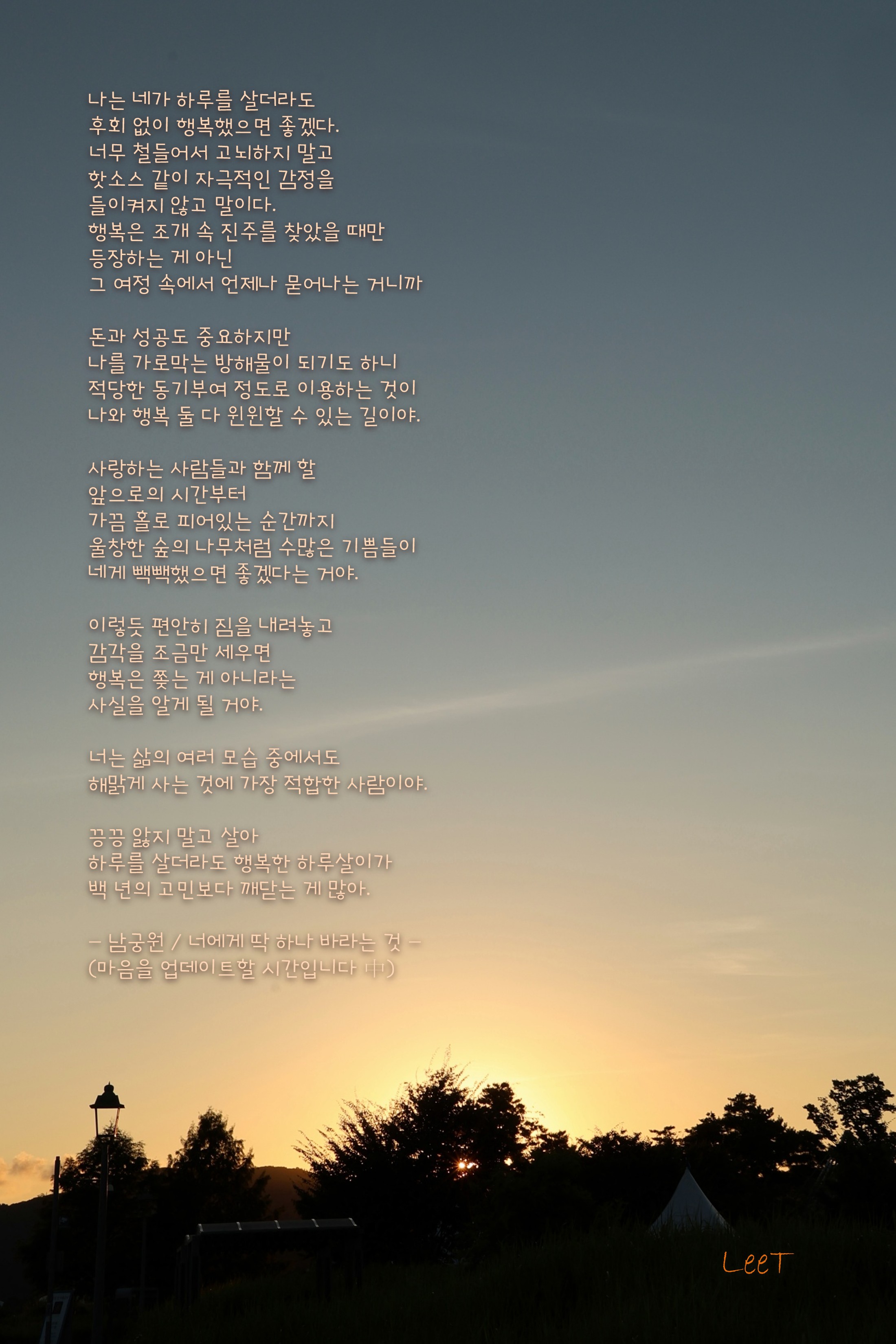후회 없이 행복했으면 좋겠다.