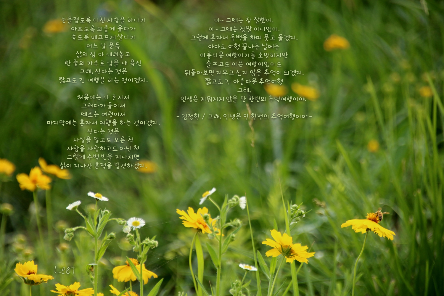 인생은 지워지지 않을 단 한번의 추억여행이야.