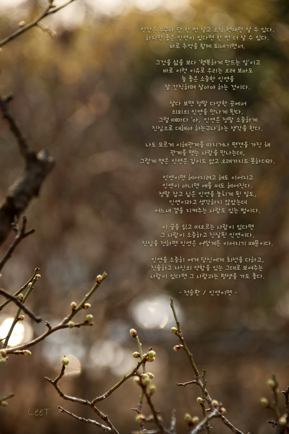 인연을 소중히 여겨 당신에게 최선을 다하고,